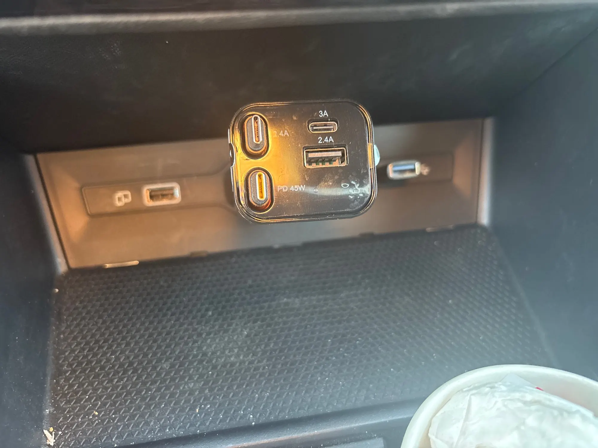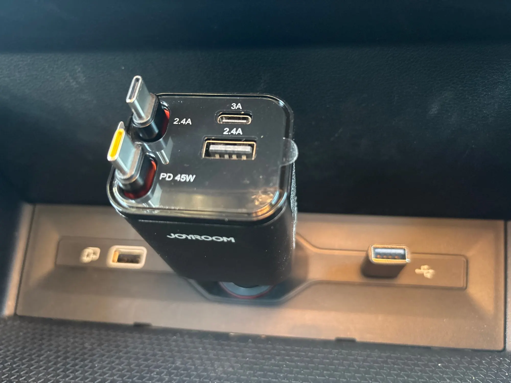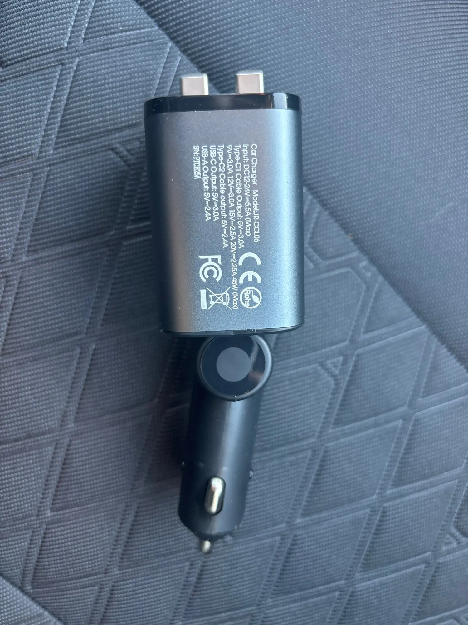 - Smart all-in-one car charger designed for convenience and clean car interiors